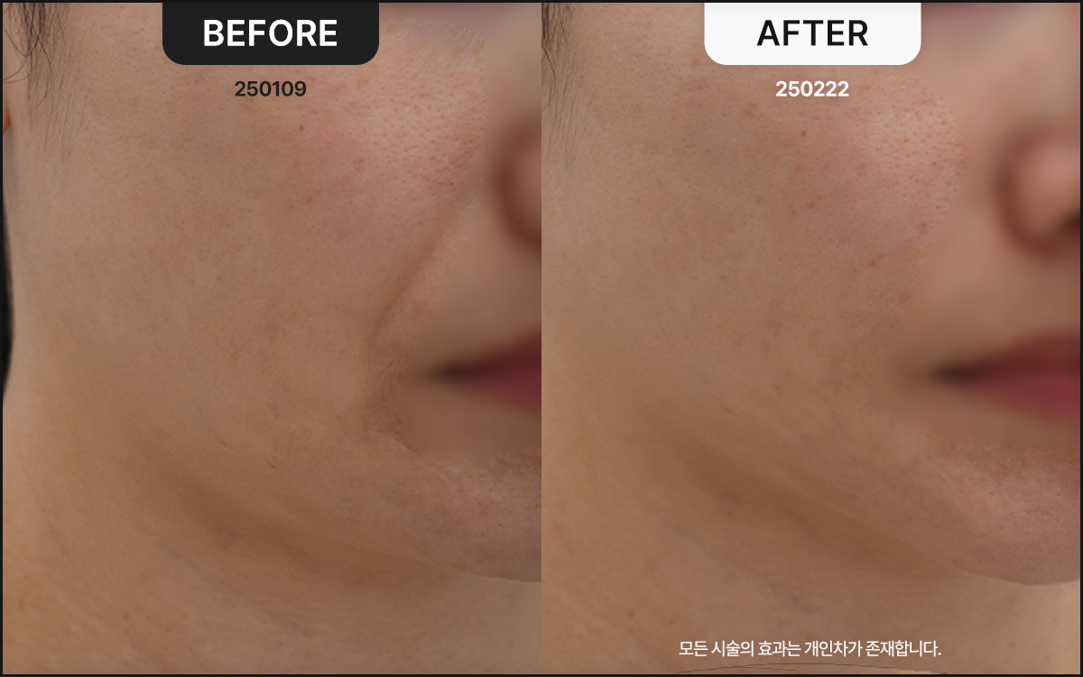 모든 시술의 효과는 개인차가 존재하며 멍 등의 부작용이 있을 수 있으니 의료진과 상담 하시길 바랍니다.