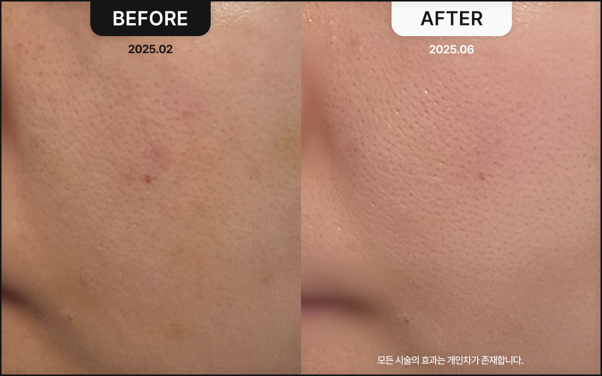 시술 당일에도 일상 생활이 바로 가능한 시술 시술 후 티가 날까봐 고민하시나요? 모공 컨택터는 시술 당일에도 부담 없이 일상 생활이 가능한 시술입니다. |